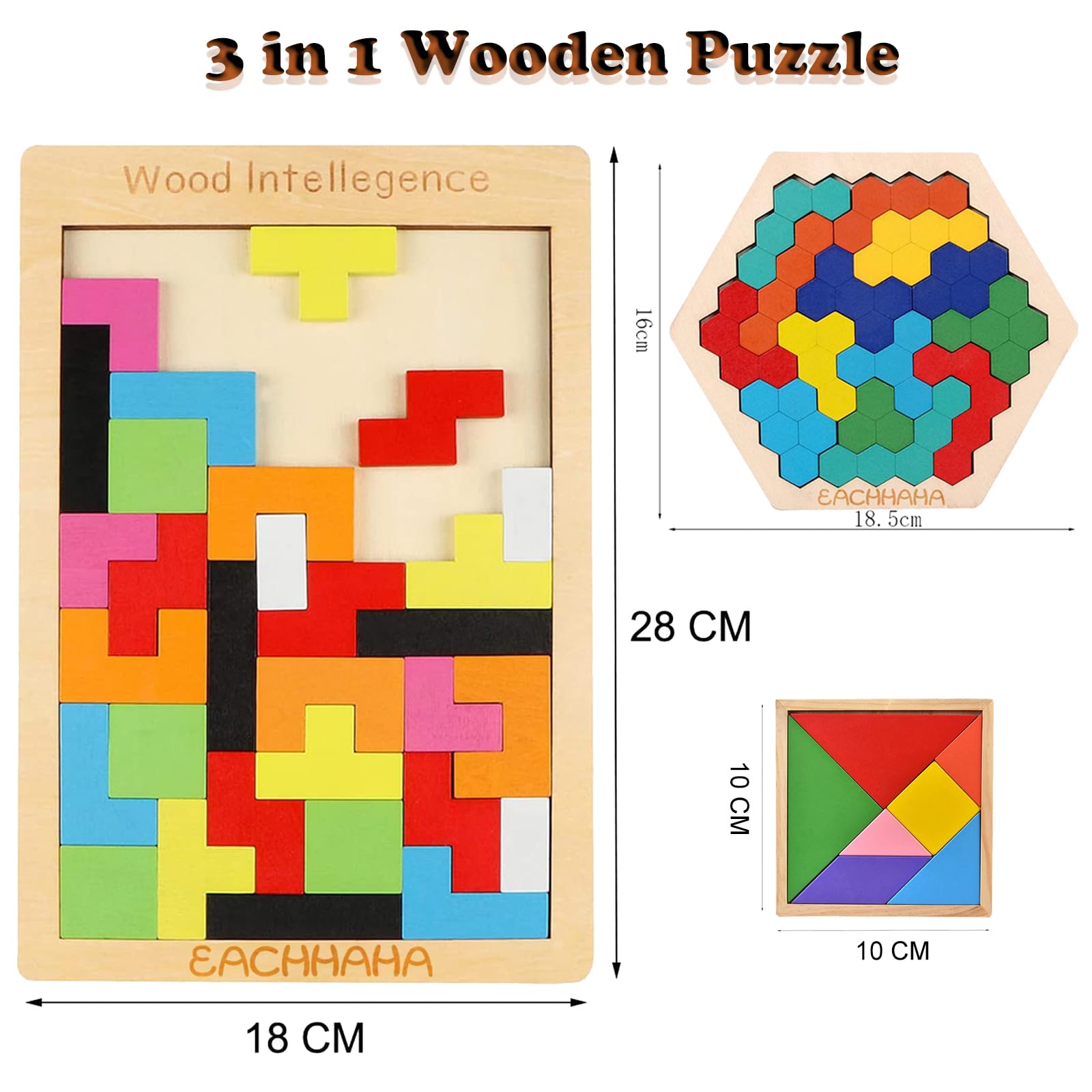EACHHAHA Montessori Spielzeug ab 4 Jahre,3 in 1 Tangram Holzpuzzle Kinder,Kreativ Lernspielzeug,Fördert rĂ€umliche Vorstellungskraft und logisches Denken, Geschenkidee fĂŒr Kinder