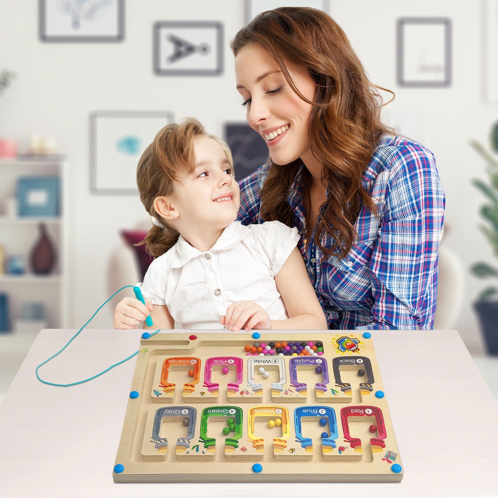 Montessori Spielzeug ab 3 4 5 Jahren, Magnetisches Labyrinth Lernspiel, Holzspielzeug zur Förderung von Zahlen und Farbenkenntnis, Motorikspielzeug und Sortierspiel, Geschenk für Mädchen und Jungen